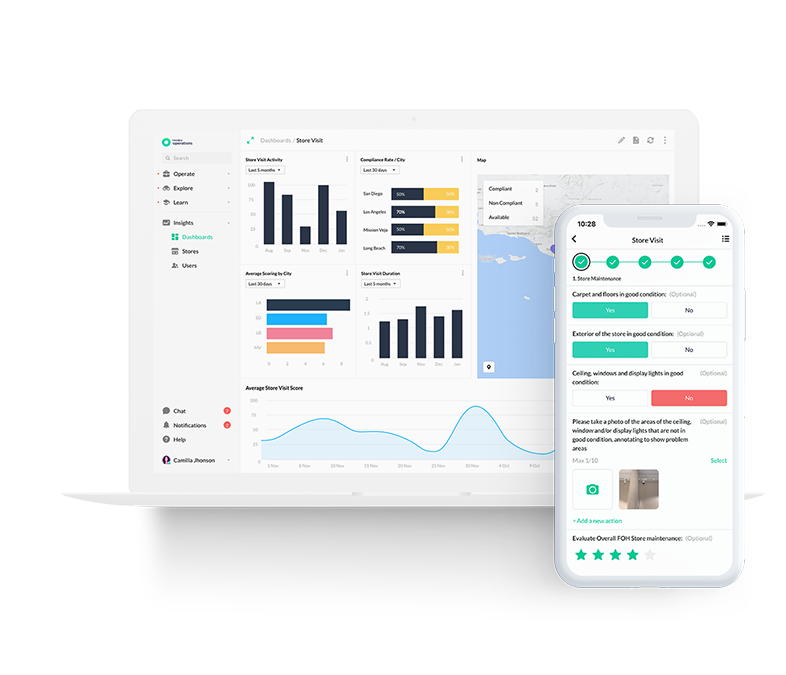 Forget about paper checklists, spreadsheets and time-consuming reports. Your area managers can complete their store visits digitally, assign action plans, and immediately send the reports to the store manager. HQ has a real-time overview of all store visits in the automated dashboard, where they can track store compliance.