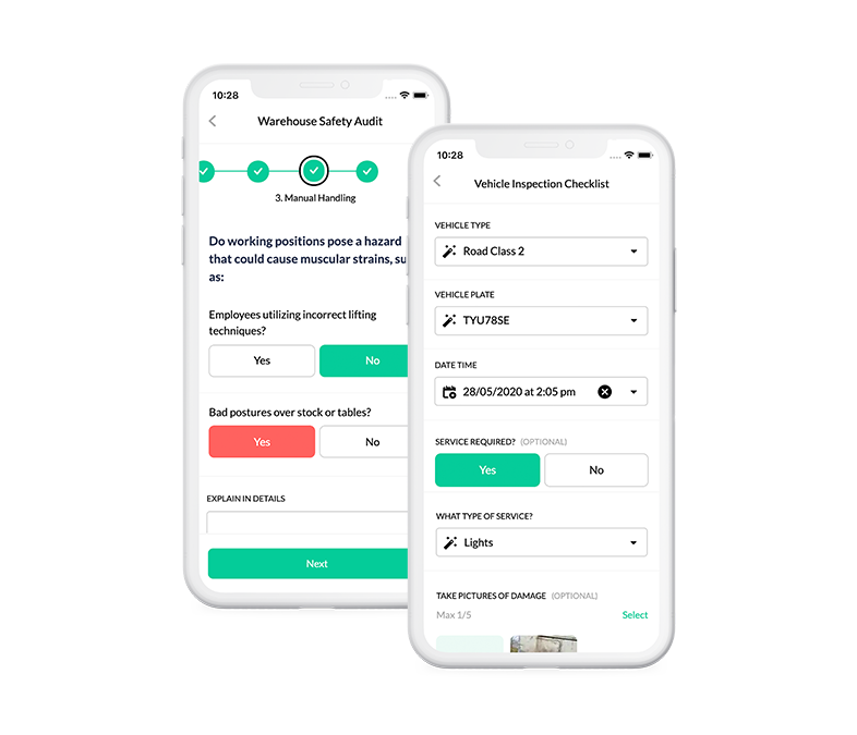 Forget about paperwork, spreadsheets and time-consuming reports. Digitize all your health & safety procedures such as audits, risk assessment forms and safety inspections on vehicle and equipment.