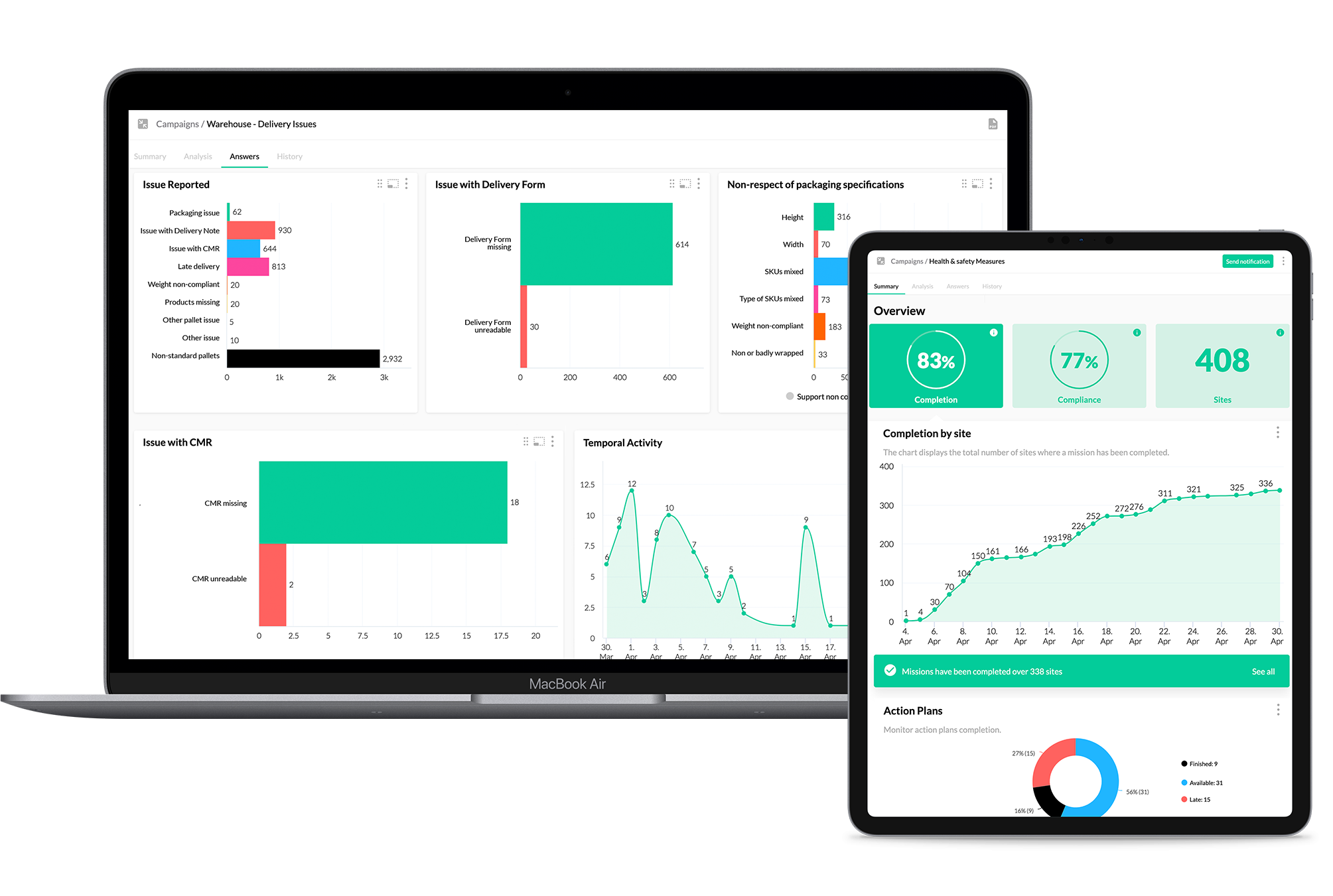 Deja de hacer malabares con formularios en papel, hojas de Excel y correos electrónicos. Usa una aplicación intuitiva para administrar tus "check lists" de visitas de tienda y auditorías, asigna planes de acción y automatiza las puntuaciones para aprobar / suspender para así ahorrar tiempo y mantener tu red de tiendas al máximo nivel.