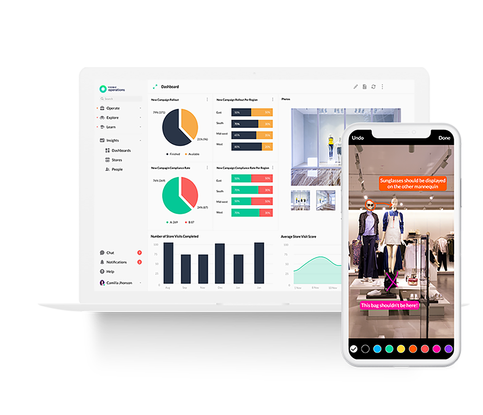 Send visual merchandising guidelines to stores and receive instant insights into their execution and compliance, as store teams send images to HQ in real-time to allow for comments and feedback. Remote VM and retail teams can use the automated dashboards and photo library to analyze compliance across your store network.