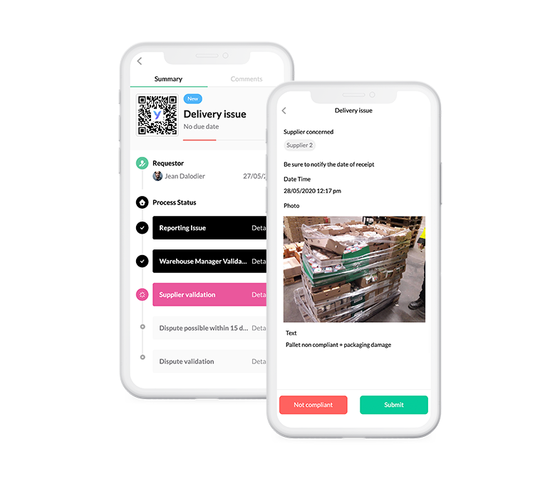 The quality inspection process in warehouses is often manual and overly time-consuming. When an issue is detected, it requires numerous systems and exchanges of emails between warehouse operators, logistics teams, purchasing departments, and suppliers to resolve. YOOBIC digitizes this entire process, from inspection checklists to the reporting of issues and approval by different stakeholders, making it efficient and transparent.