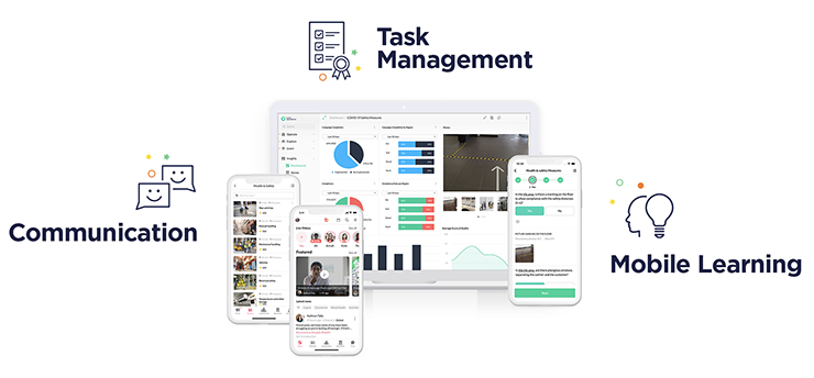 That's why we created a unique digital workplace that helps businesses empower their frontline teams for success, wherever they are, through effective communication, mobile learning and, digitized task management - all in one place.